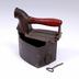 Ferro de engomar a carvão constituído por recipiente de depósito de combustível e tampa com pega de madeira pintada de vermelho. A tampa encaixa na base, fechando atrás com uma chave. Na tampa de cada lado, na parte detrás do ferro, vêem-se dois círculos gravados tendo no interior um a letra "A" e outro um "4". Na boca do ferro tem inscrito um circulo com um desenho de uma pomba ou seta. O depósito apresenta na superfície posterior um orifício com uma tampa móvel com a inscrição em toda a volta "MARCA REGISTADA" e ao centro a sobreposição das letras "C" e "F". O interior contém uma grelha para separar o carvão da cinza. 07.10.2020 [SFS]